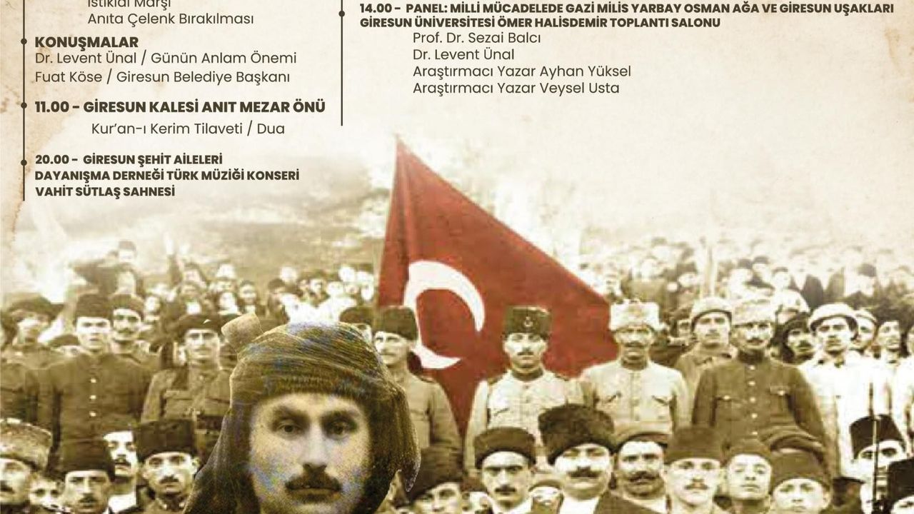 Anma programları, 3 Nisan 2026 Cuma günü saat 14.00’te Giresun Üniversitesi Ömer Halisdemir Konferans Salonu’nda gerçekleştirilecek panel ile devam edecek. Alanında uzman tarihçiler ve araştırmacı yazarların katılacağı panelde, Millî Mücadele ruhu ve Osman Ağa’nın tarihsel rolü ele alınacak.